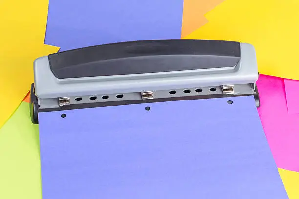 A heavy-duty adjustable paper punch that accurately creates three standard holes for inserting sheets into binders, with a built-in tray to collect paper chads neatly.