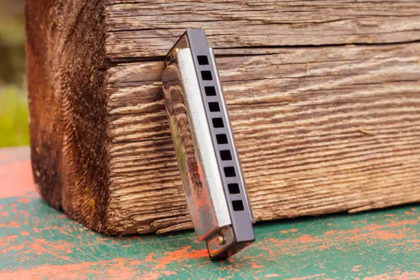 A 10-hole diatonic harmonica in the key of C, the standard for blues, folk, and pop music. Made from a durable plastic comb with brass reeds, it’s a pocket-sized instrument capable of expressive bends and melodies.