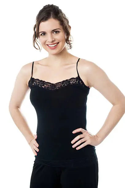 A delicate camisole top featuring pretty lace trim details, offering a feminine and romantic touch that is perfect for layering or wearing on its own during warmer days or for special occasions.