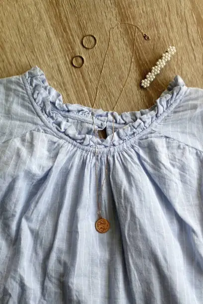 A flowy linen blouse adorned with feminine ruffles, offering breathable comfort and a touch of romance perfect for warm-weather outings, casual offices, or dressing up for a summer dinner.