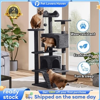 A tall, stable post wrapped in durable sisal rope with integrated platforms and toys, satisfying your cat’s need to scratch, climb, and perch all in one unit.