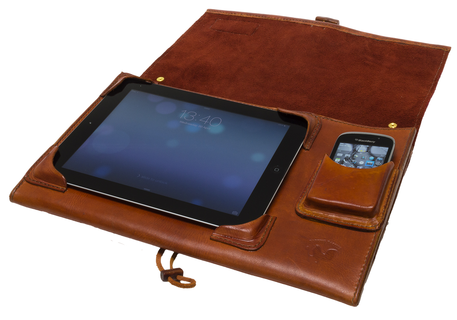 A professional, zippered leather or faux leather portfolio with inside pockets and a notepad holder, perfect for carrying resumes, proposals, and tablets to meetings.