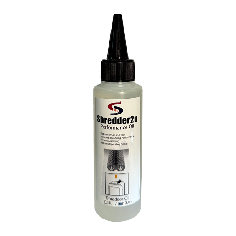 A specially formulated lubricating oil applied to shredder blades to reduce friction, prevent paper dust buildup, and extend the life and performance of your paper shredder.