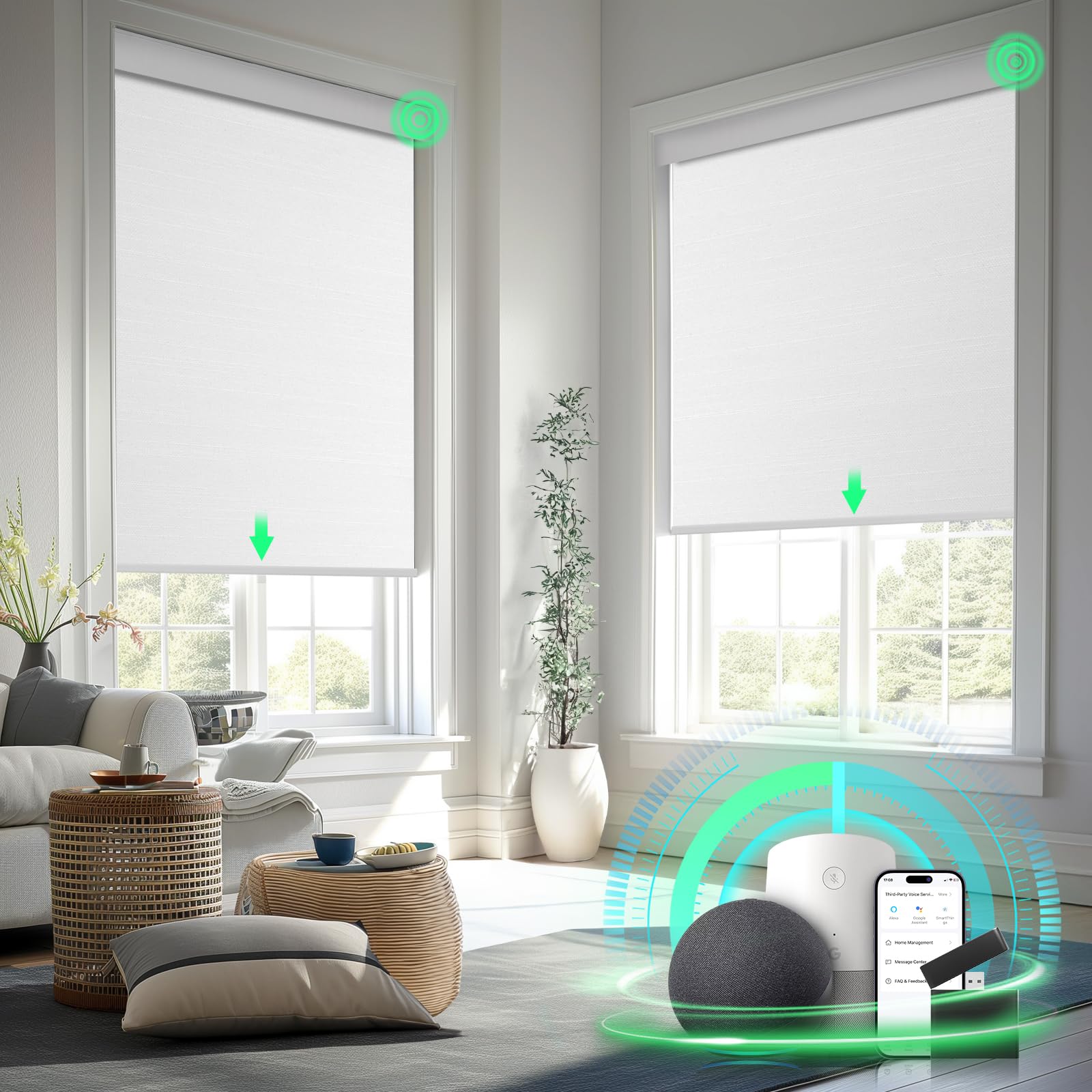 Battery-powered smart blinds that offer remote control via app or voice, scheduled operation to match your daily routine, and integration with other smart home devices.