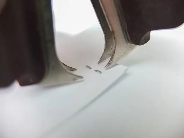 A simple, effective metal tool with two pincer-like jaws designed to safely and cleanly remove staples from documents without tearing the paper, an essential for any desk.
